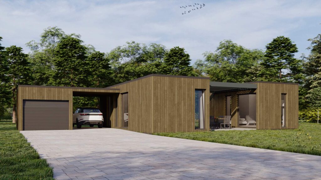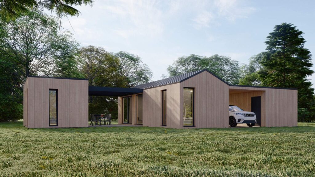 Rozsáhlá varianta domu v dispozici až 4+KK s garáží a zastřešeným stáním dělá svojí členitostí z projektu atypickou stavbu, které si nelze nevšimnout. Přidaná jednotka 1+KK s vlastní kuchyní a koupelnou dodává mobilnímu bydlení nový rozměr.