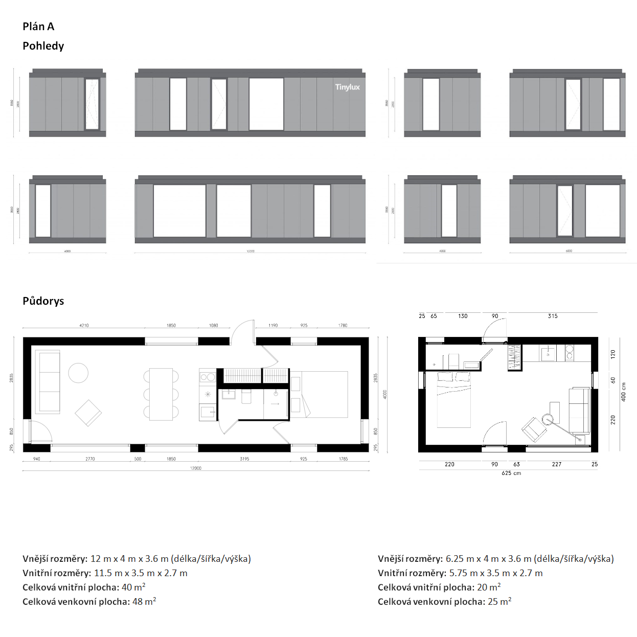 ROZMĚRY DRUHÉ JEDNOTKY: 6,25 m x 4 m x 3,6 m/3,95 m – sedlová střecha (délka/šířka/výška)